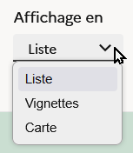 Le choix d’affichage en carte est proposé au niveau de la liste déroulante « Affichage en »